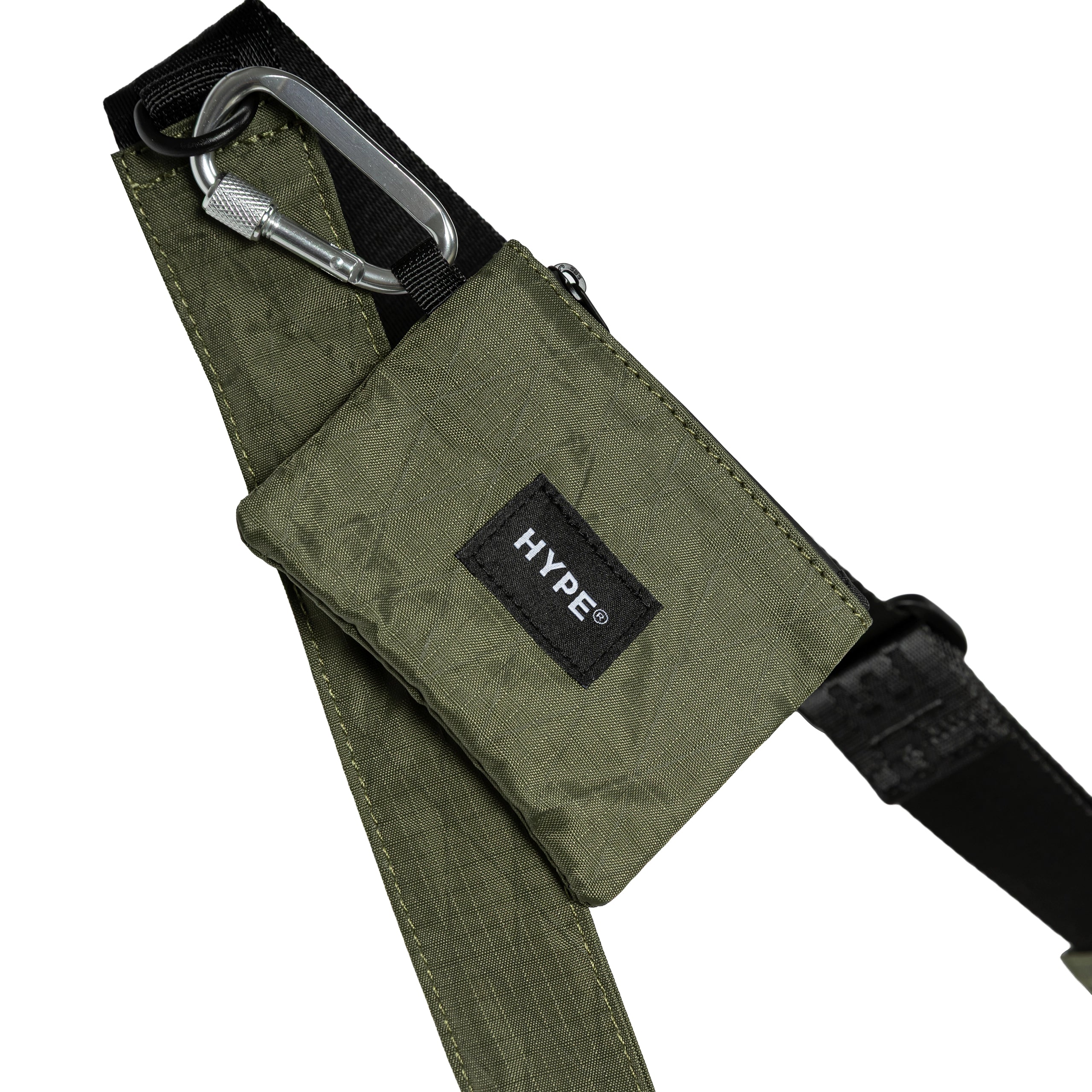 Attached pouch with screw-lock carabiner